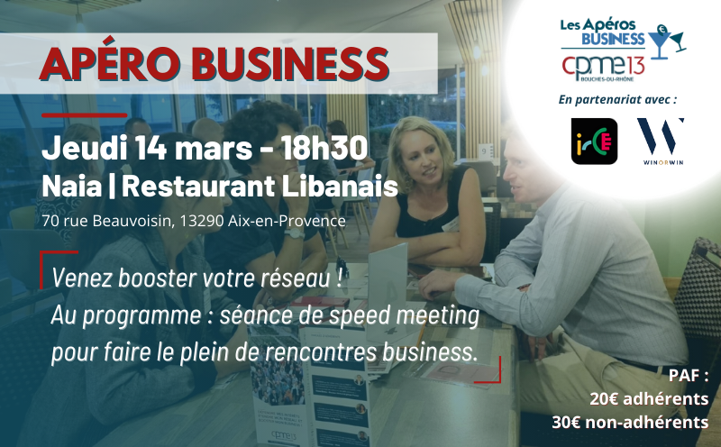 Rendez-vous le jeudi 14 mars pour un nouvel Apéro Business sur le territoire du Pays d’Aix !